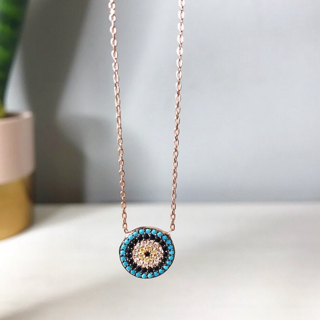Evil Eye Sparkly Fixed Pendant Necklace14ct Vermeil on 925 sterling silver